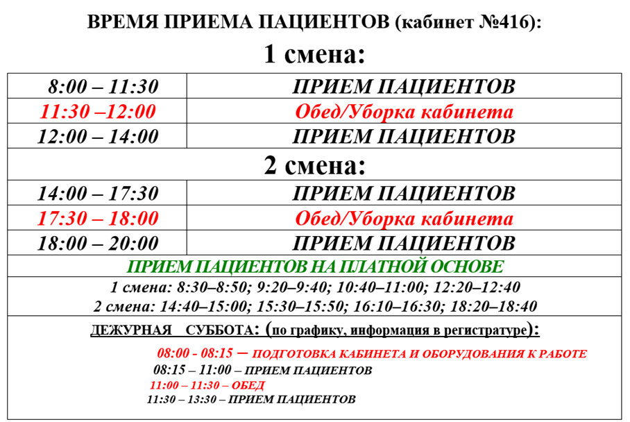 График работы кабинетов 416, 417!